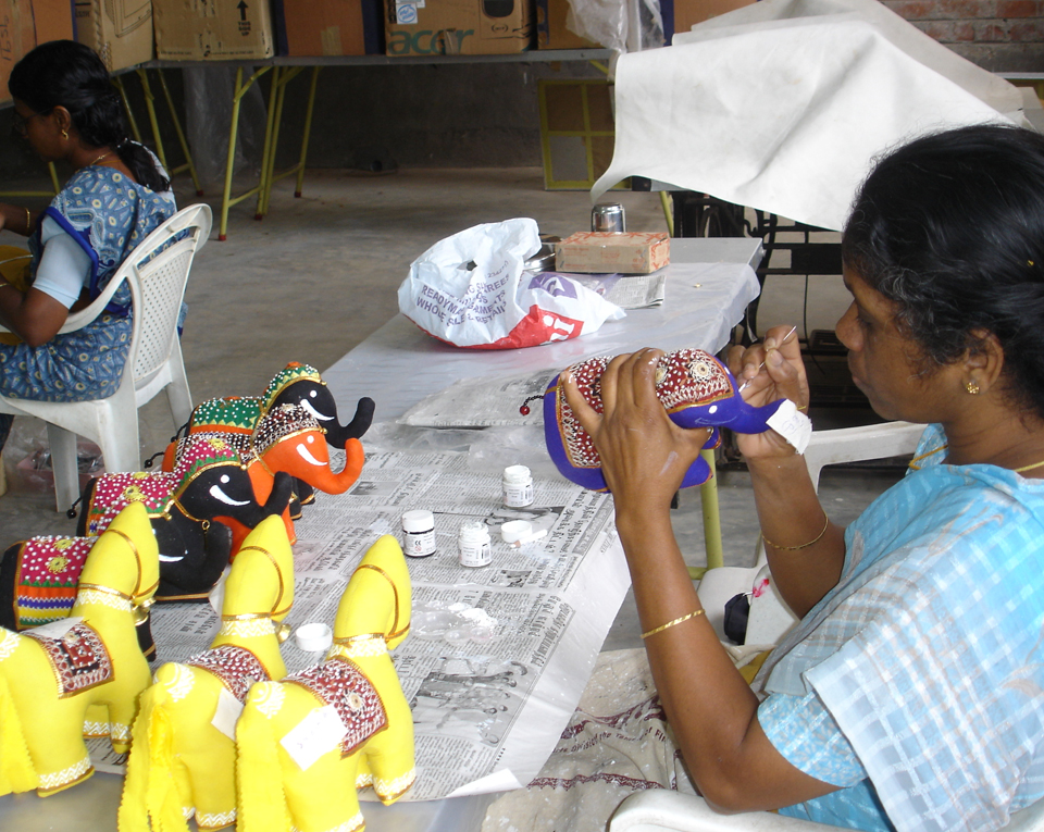 From this humble beginning the unit now has trained over 500 women and employed 250 of them. The unit has grown only by word of mouth. No attempt is made to actively recruit workers and no attempt is made to hold workers by written contracts etc. All workers are only encouraged to use the skill they have acquired to earn well – whether within the unit or outside it.